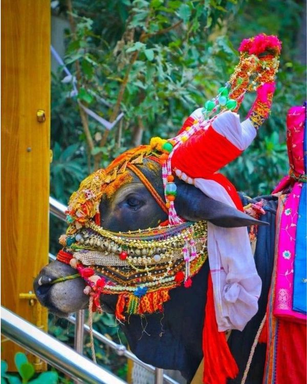 A sacred folk tradition where a decorated bull and its keeper travel through villages during festivals, offering blessings through music, movement, and storytelling. It symbolizes prosperity, devotion, and the deep relationship between humans, animals, and the land.